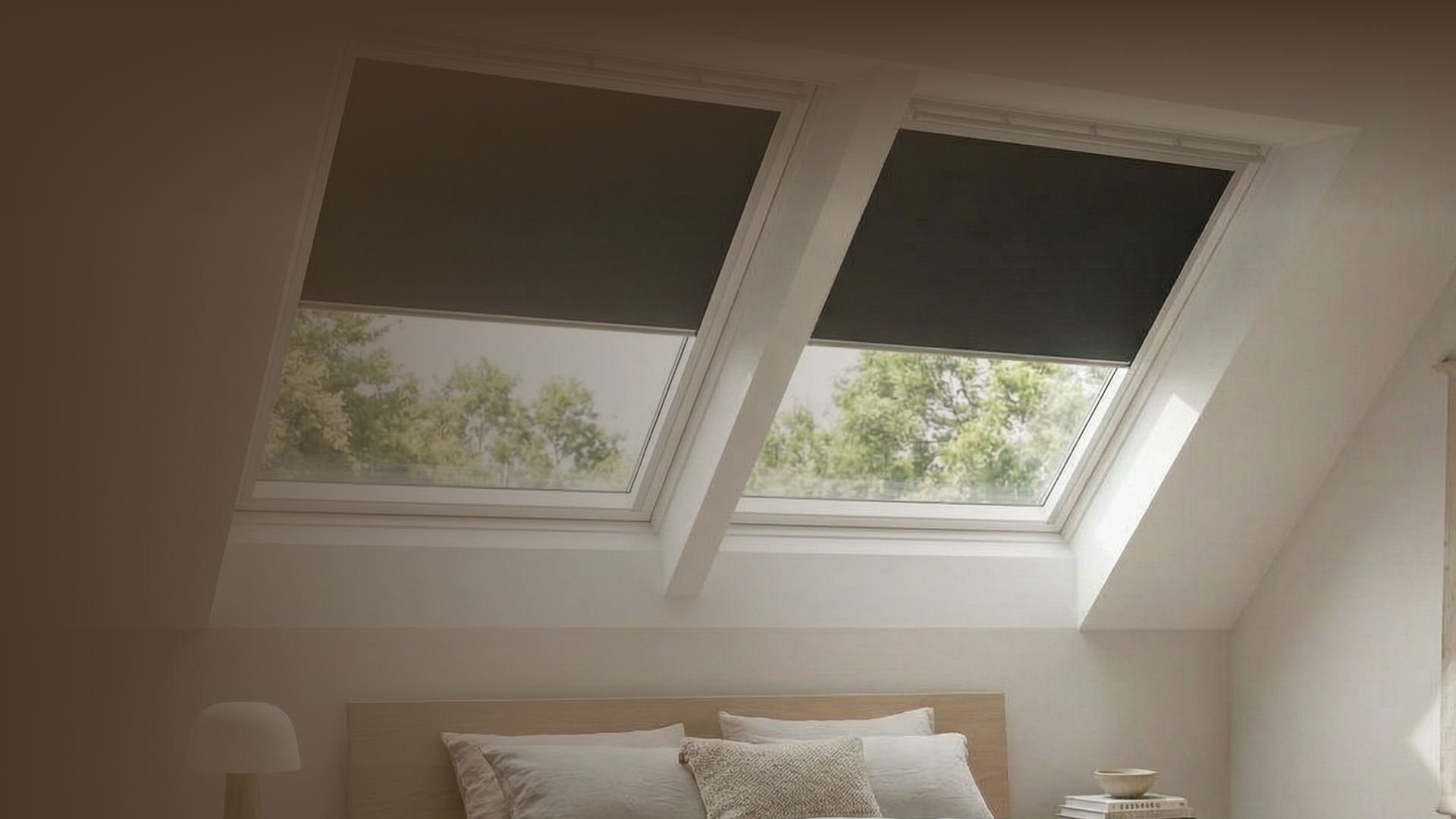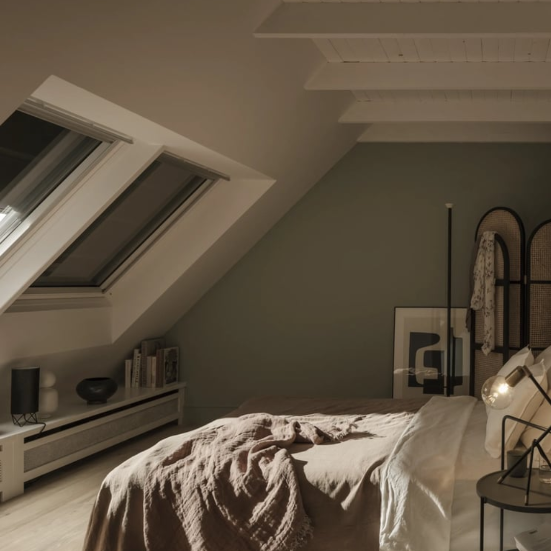 VELUX tamsinančios išorinės užuolaidėlės suteikia ne tik apsaugą nuo šilumos, bet ir efektyvų užtemdymą – tai ypač vertinama miegamuosiuose, kai norisi geresnio miego net karštomis vasaros naktimis.